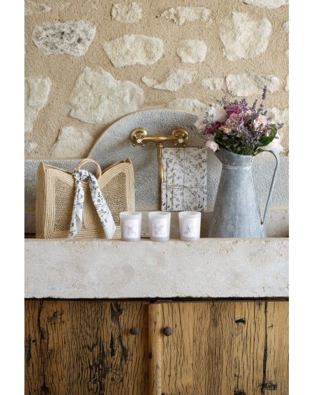 Our candles are produced using a 100% natural vegetable wax. After pouring the hot wax blend, a 100% cotton wick is installed by hand into the glass container, and left to cool before being labeled and packaged with care in our Provence atelier. A rigorous quality control review is undertaken to assure the preservation and the maximal diffusion of our unique fragrances. With proper care, candles may burn for up to 45 hours.